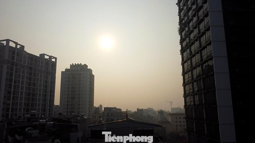| Bầu không khí đặc quánh trong bụi mịn và sương mù buổi sáng đầu tuần tại khu vực Hà Nội. |