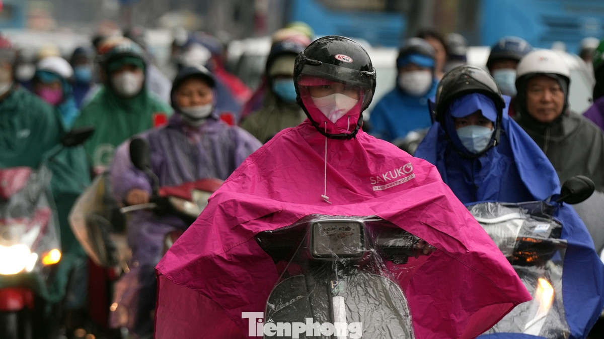 Cơn dông kèm mưa nhỏ khiến đường phố Hà Nội tối đen, giao thông đúng thời điểm đi làm của người dân bị ảnh hưởng.