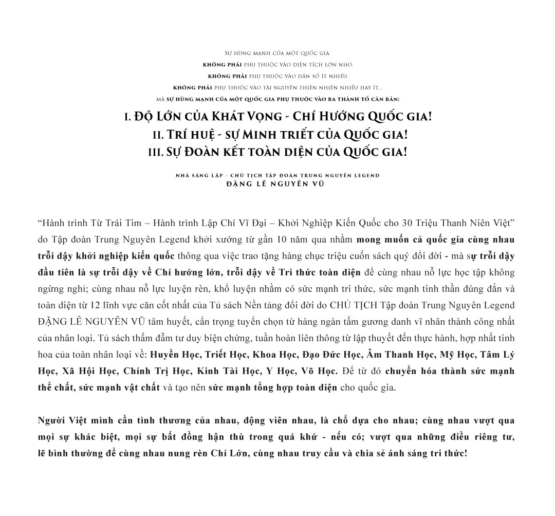 * Nội dung bài viết được rút từ cuốn sách "Quốc gia khởi nghiệp" của các tác giả Dan Senor & Saul Singer, và nhiều tài liệu tham khảo khác. Đây là 1 trong 5 cuốn sách quý nền tảng đổi đời được Chủ tịch Tập đoàn Trung Nguyên Legend Đặng Lê Nguyên Vũ tự tay tuyển chọn, viết thư ngỏ, với mong mỏi sách sẽ đến tay tất cả các bạn trẻ và nhân dân cả nước, để thay đổi nhận thức, thôi thúc khát vọng vươn lên làm giàu, cùng xây dựng đất nước hùng cường.