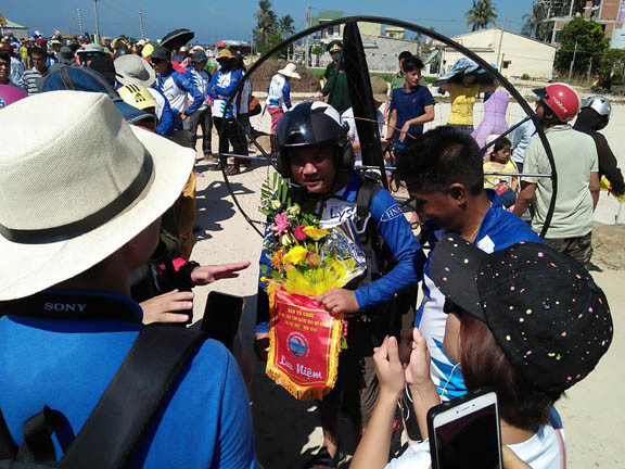 Anh Vũ Chiến Thắng – VĐV thuộc CLB dù lượn hàng không Hà Nội, cho biết: Để tham gia giải này, anh và đồng đội của mình đã ra đảo Lý Sơn từ gần một tuần nay để luyện tập và làm quen địa hình. Biển đảo Lý Sơn nhìn từ trên cao quá đẹp, so với các địa điểm anh từng thi đấu thì Lý Sơn rất phù hợp để tổ chức các giải thi dù lượn quốc tế.