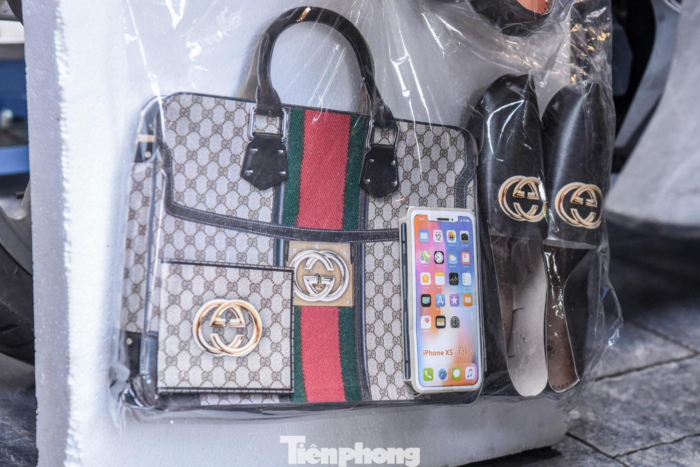 | Những món đồ hàng hiệu, điện thoại thông minh... được bày bán hút khách mua. |