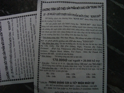 Được ba buổi phát tờ rơi, bạn sẽ lại tới công ty để đòi quyền lợi, họ sẽ tìm mọi cách thoái thác, cho rằng bạn không đủ tiêu chuẩn. Lời lẽ họ đưa ra rõ ràng không thể kiểm chứng, cho dù bạn có tìm được người khác tới đăng ký trực tiếp cùng mình, bạn cũng không nhận được 60.000 đồng như đã hứa.