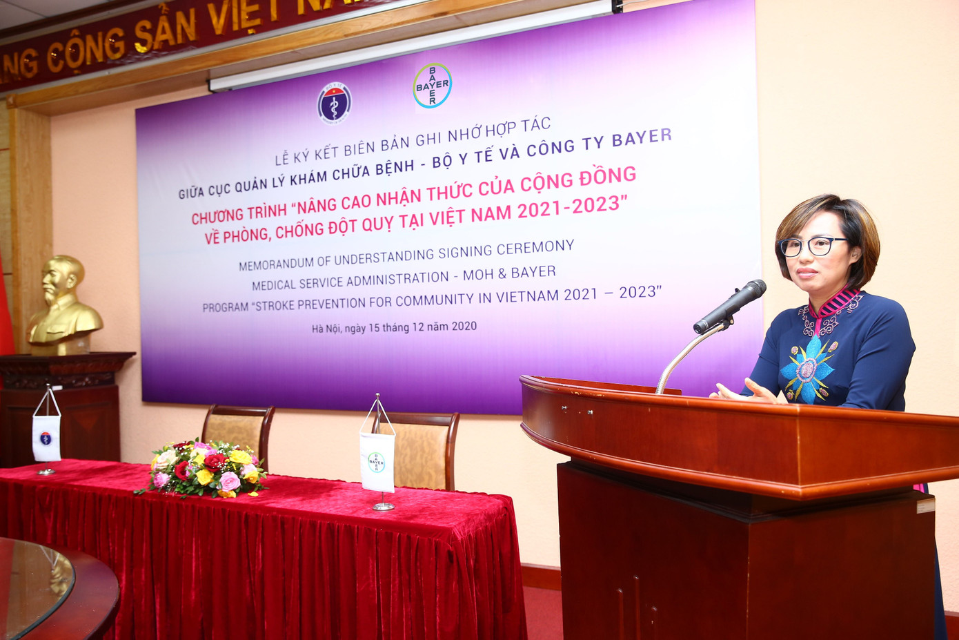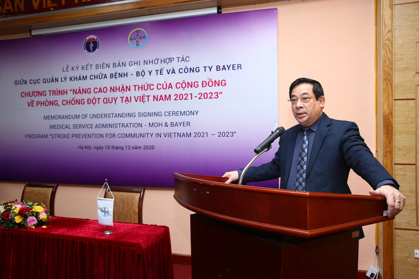 Lễ ký kết đã được diễn ra tại văn phòng Bộ Y tế dưới sự chủ trì của PGS.TS Lương Ngọc Khuê, Cục trưởng Cục Quản lý Khám chữa bệnh, Bộ Y tế - Phó Trưởng Ban phòng, chống bệnh không lây nhiễm cùng các đại diện của Cục Quản lý Khám, chữa bệnh (QLKCB) và các cán bộ, nhân viên tại các bệnh viện trên cả nước trực thuộc Bộ Y tế. Lễ ký kết biên bản ghi nhớ lần này là một minh chứng cho thấy sự hợp tác giữa Bayer và Cục Quản lý Khám, chữa bệnh là nỗ lực không ngừng trong việc duy trì và phát triển kênh thông tin điện tử giúp nâng cao nhận thức của cộng đồng về phòng ngừa đột quỵ