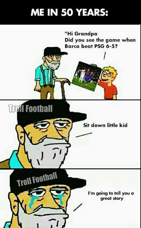 Việc Barca được hưởng hai quả phạt đền trong trận thắng PSG cũng trở thành đề tài châm chọc cho các anti-fan. Một bức ảnh ghép xuất hiện mang theo câu chuyện hài hước: Trọng tài hỏi Barca cần mấy quả phạt đền, trước khi Busquets và Xavi đồng thành đáp lại: hai".