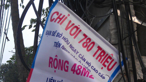 Cách đây ít lâu, trên đường Cầu Giấy, quảng cáo "Chung cư bán giá gốc 15,6 triệu/m2, thanh toán 8 lần, cách Cầu Giấy 10 phút đi xe" được treo nhan nhản. Tương tự như vậy, các tuyến phố như Lê Văn Lương, Tây Sơn, Nguyễn Trãi cũng đầy rẫy những rao vặt nhà đất.