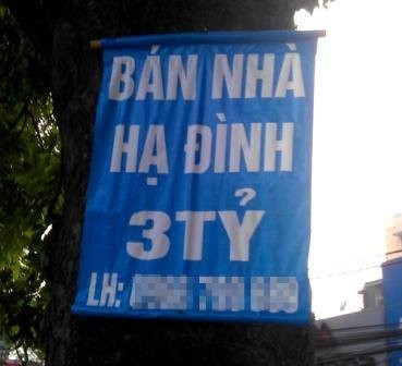 Dọc các tuyến phố lớn, đến ngõ hẻm, khu dân cư, hàng loạt tờ rơi rao vặt mua bán nhà đất, chung cư, đất dự án được dán chi chít trên tường, cột điện, gốc cây, cả nắp cống,... Hoành tráng hơn, nhiều ông chủ lớn còn thuê cả băng rôn, áp phích dự án treo cột điện với nhiều nội dung như: "cơ hội sở căn hộ cao cấp giá chỉ 1 tỷ đồng", "Ưu đãi mua nhà", "Nhà ở ngay giá 500 triệu đồng"...