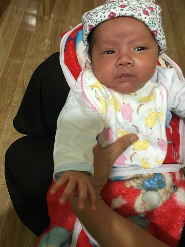 Ngay sau đó, bà bế cháu vào trung tâm Y tế để kiểm tra tình hình sức khỏe. Đồng thời, xin phép chính quyền địa phương được tạm chăm sóc cháu, vì con dâu mới sinh nên có sữa để uống. Sau mấy ngày được gia đình bà nuôi dưỡng, cháu bé đã khỏe mạnh bình thường.