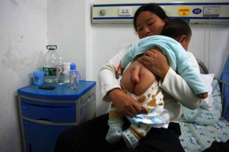 Bé Nuo Nuo, 5 tháng tuổi, khi chào đời đã mang trên mình chứng nứt đốt sống (spina bifida), một chứng rối loạn phát triển bẩm sinh vốn tạo nên một lỗ hổng ở xương sống.
