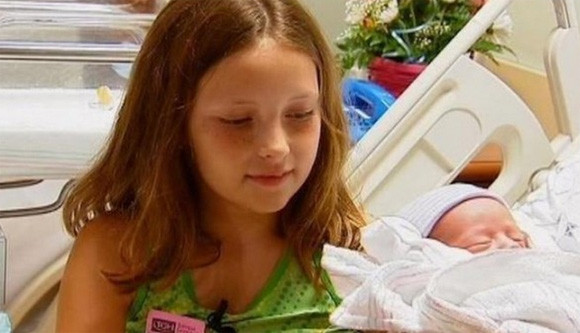 Bé Jazmine ở cạnh mẹ từ lúc cô sinh con đến nay. Bác sĩ và y tá ở bệnh viện tại Tampa, Florida, ấn tượng trước hành động của cô bé đến mức vừa tặng Jazmine một tờ giấy chứng nhận đặc biệt.