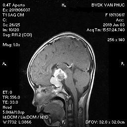 Hình ảnh MRI phát hiện khối u kích thước 27mm x 14mm ở vị trí sọ hầu của bé gái 9 tuổi
