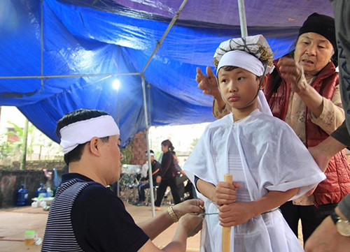 Đứng chống gậy bên quan tài, trân trân nhìn di ảnh mẹ và em gái, cậu bé Đào Anh Tú (10 tuổi) dường như không tin nổi đã vĩnh viễn mất đi hai người thân yêu. Tối qua, không thấy mẹ về, em khóc hỏi suốt, ông bà nội đành nói dối khuya sẽ về.