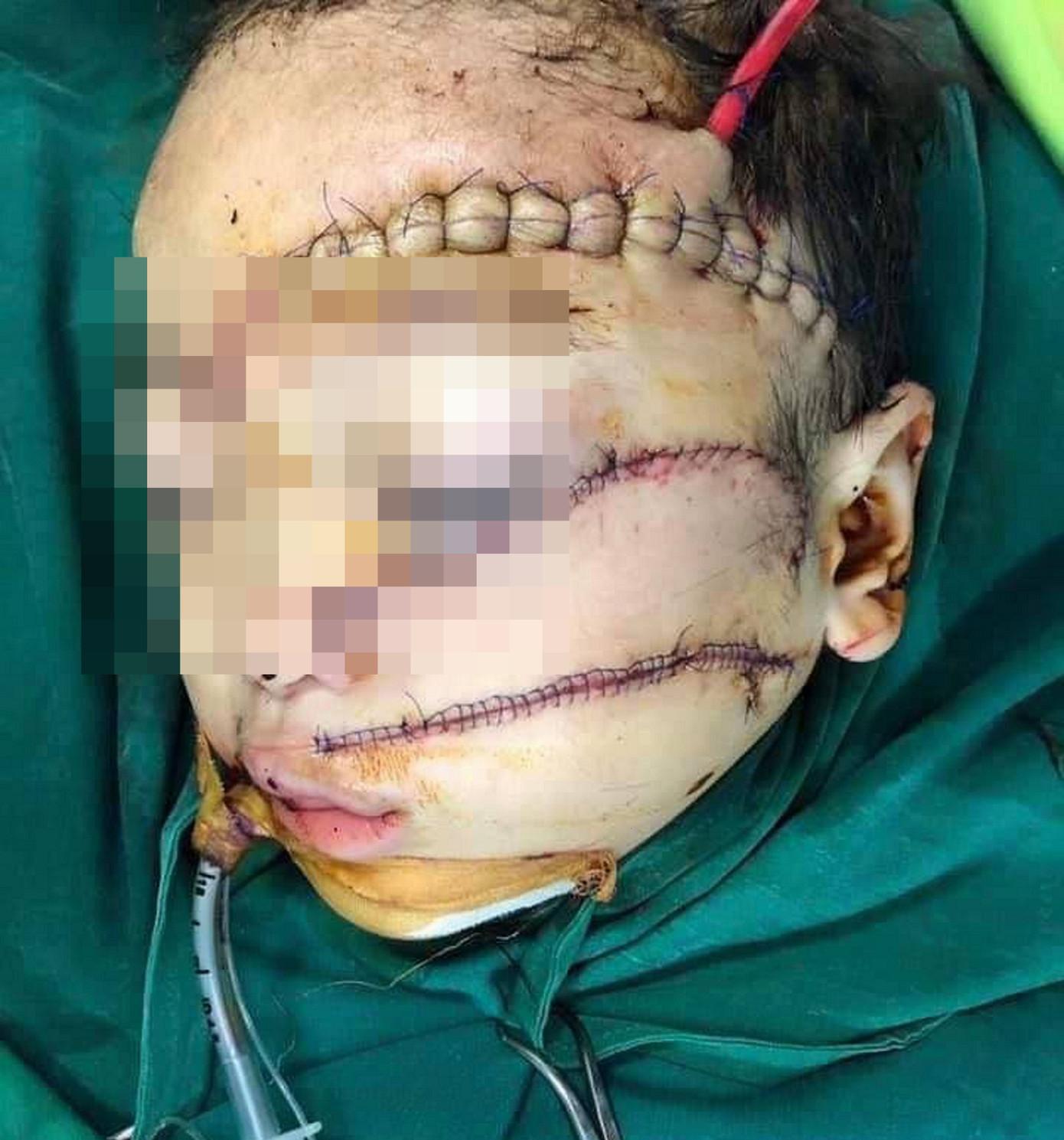 Ông Lê Đăng Trung, Phó Giám đốc Bệnh viện Đa khoa Thiện Hạnh cho hay, thời điểm được đưa đến bệnh viện, cháu K. mất nhiều máu, không bắt được mạch, không đo được huyết áp. Không chỉ vậy, 3 vết chém sâu và dài trên mặt, đứt hộp sọ, rách màng não, đứt xương hàm…