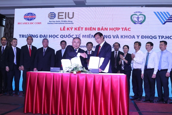 Cũng tại buổi lễ, trường ĐH Quốc tế Miền Đông đã ký kết hợp tác với khoa Y trường ĐH Quốc gia TP.HCM, động thái này nhằm hướng đến công tác chăm sóc sức khỏe tốt nhất cho chuyên gia đến làm việc tại Bình Dương và người dân sinh sống tại địa phương này.