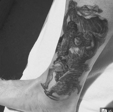 David Beckham đã xăm hình một cặp tình nhân phong cách cổ điển vào mắt cá chân trái. Hình xăm ấn tượng này lấy cảm hứng từ bức tranh cổ khá nổi tiếng tại Tây Âu. Cựu cầu thủ 40 tuổi này đã khoe dấu ấn cơ thể mới trên trang cá nhân Instagram - nơi anh đang có 2,1 triệu người theo dõi.