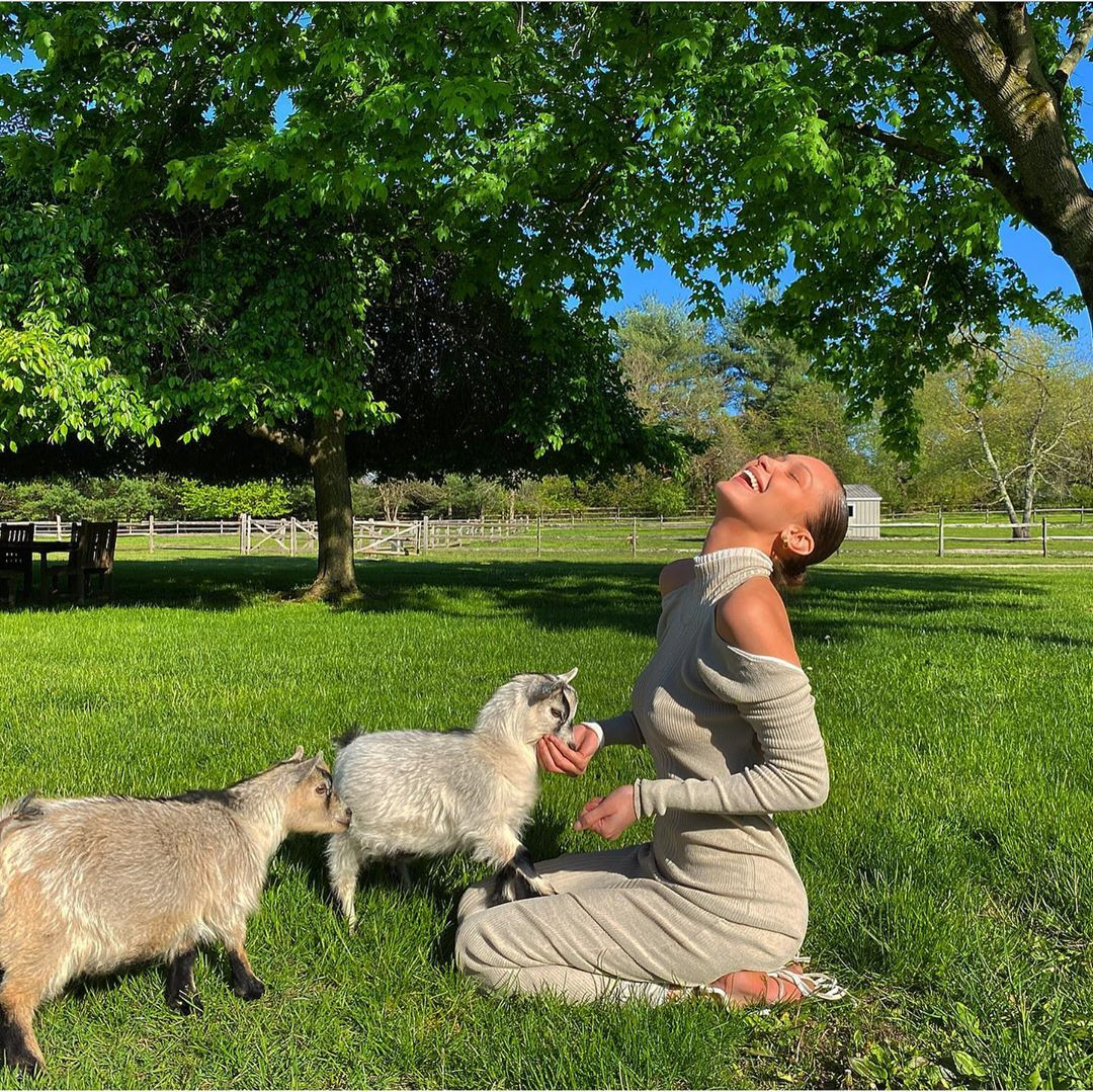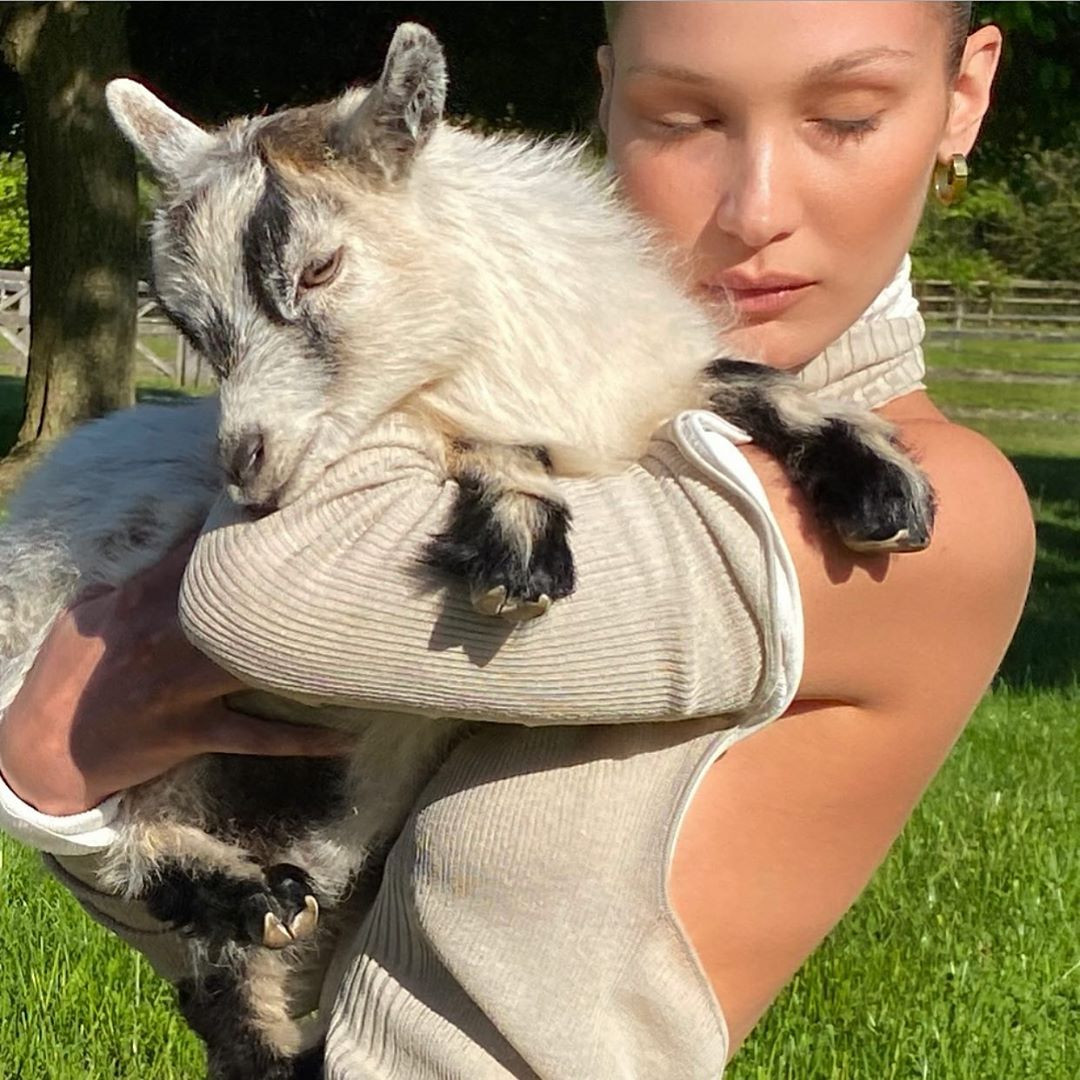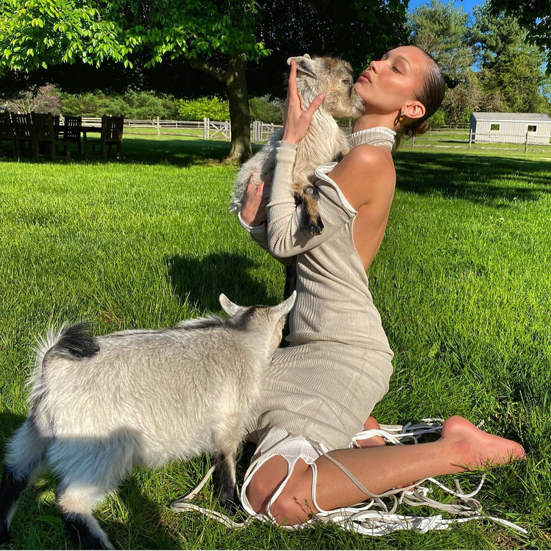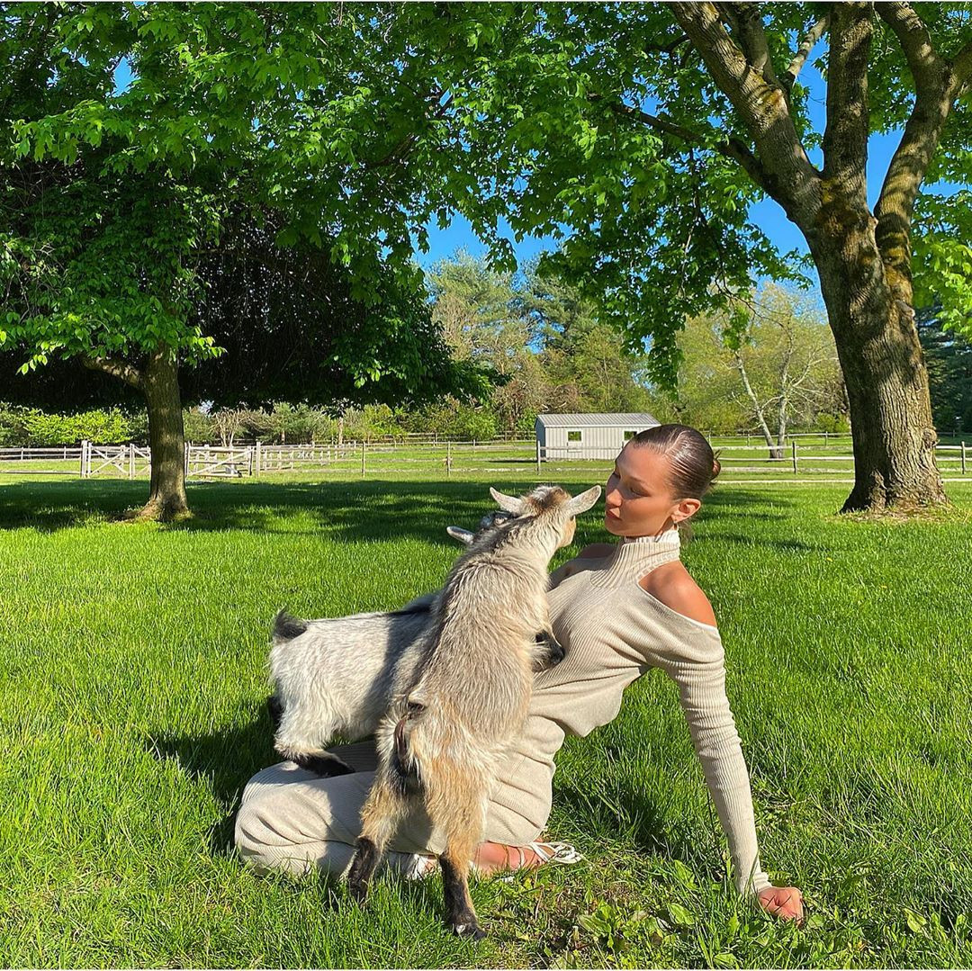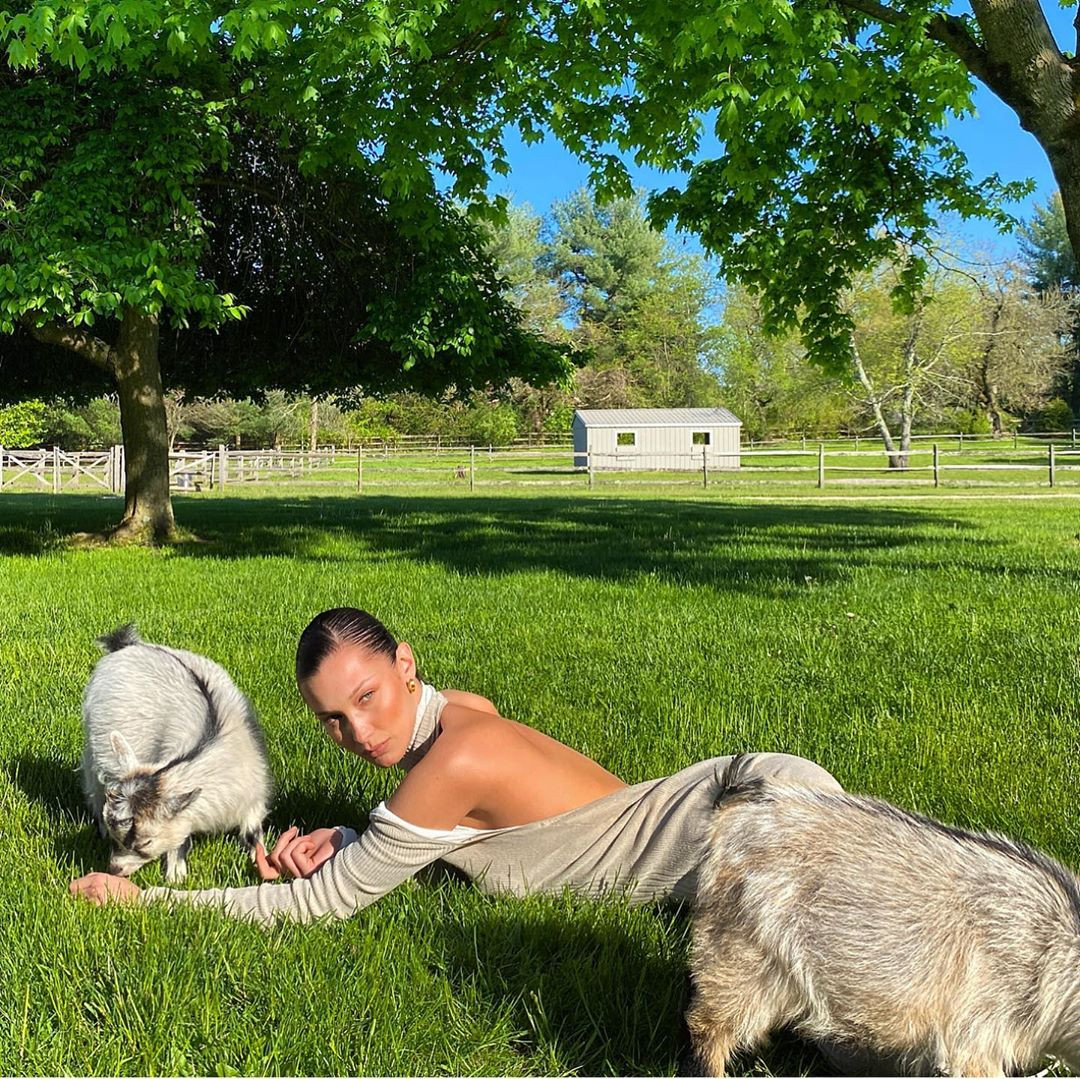 Thời gian tự cách ly chống dịch trong trang trại vườn nhà cách đây vài tháng, Bella Hadid đã có những shoot hình đẹp như mơ do chị gái đang mang bầu Gigi Hadid bấm máy.