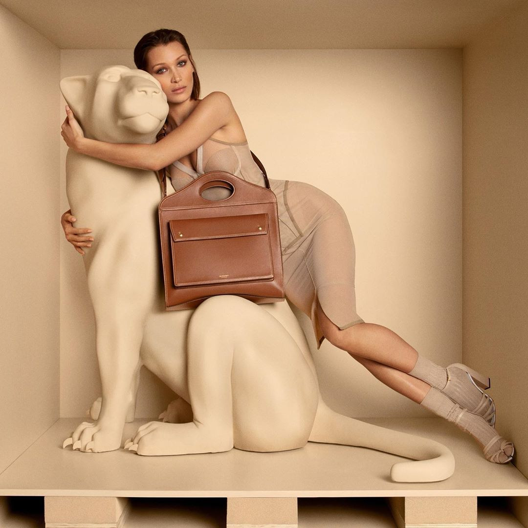 Bella Hadid diện váy áo bó sát tôn đường cong tròn đầy trong chiến dịch quảng cáo mới của Burberry.