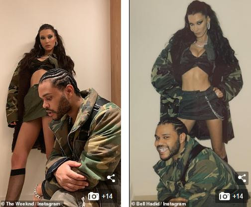 Nàng mẫu và bạn trai tạo dáng chụp ảnh nhí nhảnh. Mặc thời tiết giá lạnh ở New York, Bella Hadid vẫn ăn vận rất gợi cảm trong ngày đáng nhớ của The Weekend