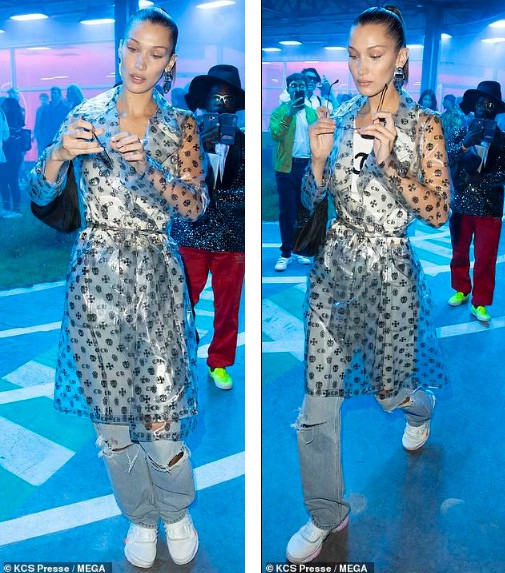 Trước đó, nàng mẫu diện thời trang áo mưa theo phong cách retro tới một sự kiện.