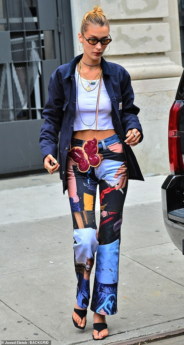 Bella Hadid chuộng mốt áo lửng, crop top... khoe eo thon săn chắc.