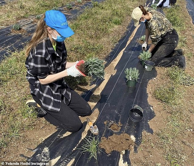 Cách đây ít ngày, Bella Hadid cùng mẹ và chị gái Gigi Hadid tự trồng 3000 cây oải hương trong nông trại gia đình ở Pennsylvania trong thời gian tự cách ly tránh dịch COVID-19.