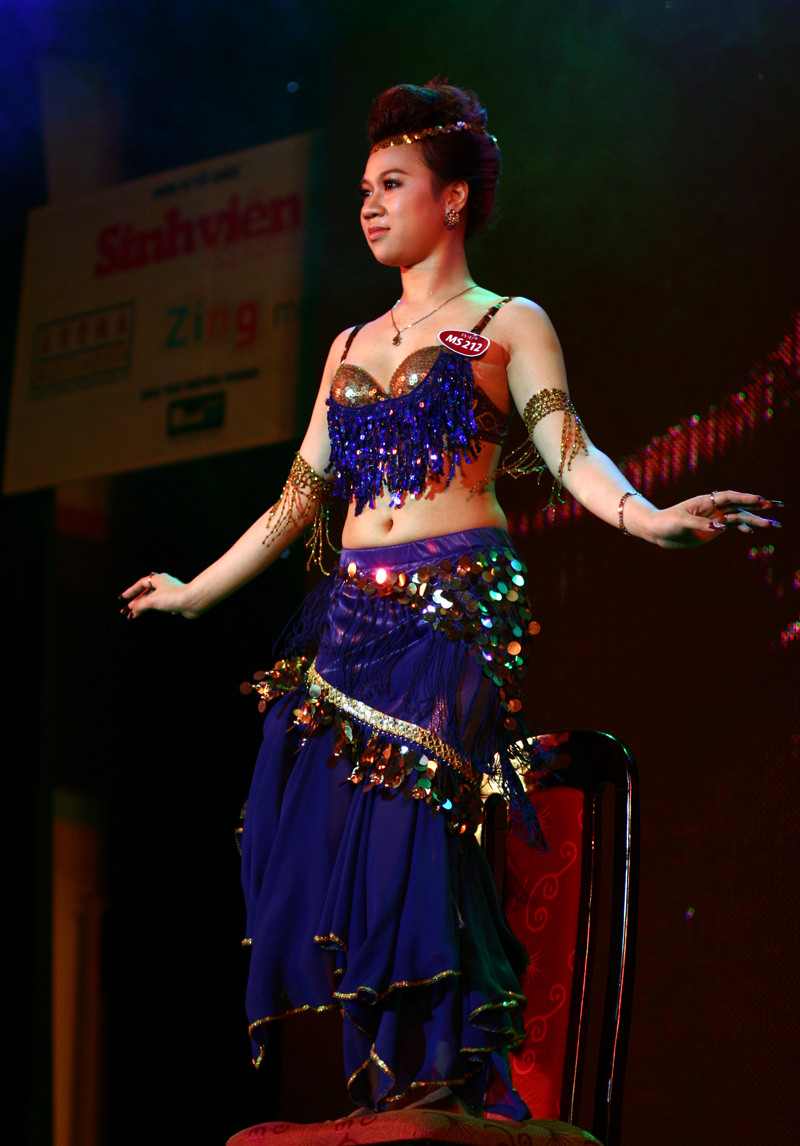 Hồ Huyền Trang (Cao đẳng Kinh tế và Kỹ thuật Nông nghiệp Hà Nội) cũng mang đến những vũ đạo của belly dance.