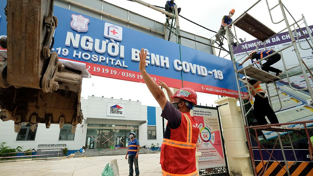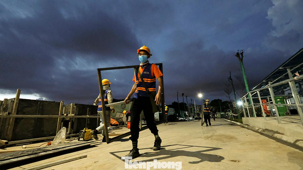 Sau hơn 1 tháng khẩn trương xây dựng, Bệnh viện dã chiến Hoàng Mai với quy mô 500 giường tại Hà Nội đang trong những ngày nước rút để hoàn thiện kịp tiến độ đề ra.