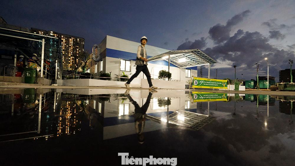 Toàn cảnh bệnh viện dã chiến Hoàng Mai (quận Hoàng Mai, Hà Nội) khi đêm xuống.