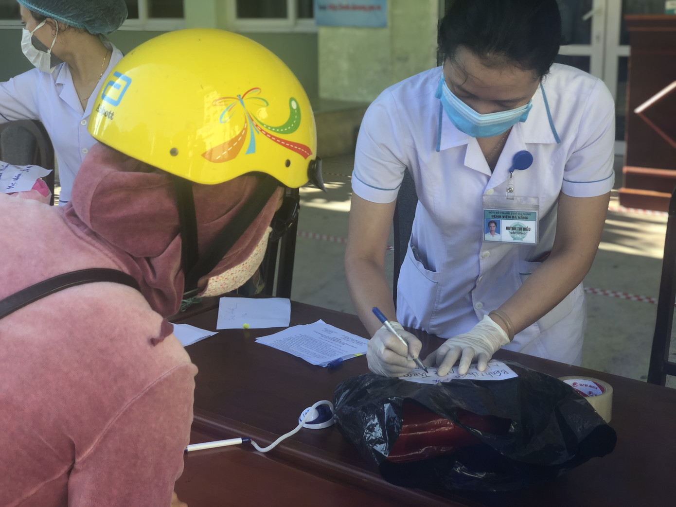 Người dân có nhu cầu gửi đồ cho người nhà sẽ được các y tá và nhân viên hướng dẫn ghi biên nhận với đầy đủ thông tin. Ảnh: Quyên Javi.