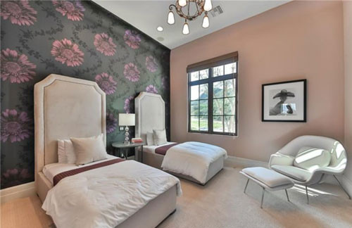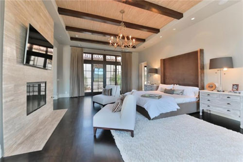 Phòng ngủ chính của khu biệt thự. Britney Spears và các con hiện sống ở Las Vegas để tiện tham gia các show tại đây, chính vì thế, cô ít sử dụng ngôi nhà tại California.