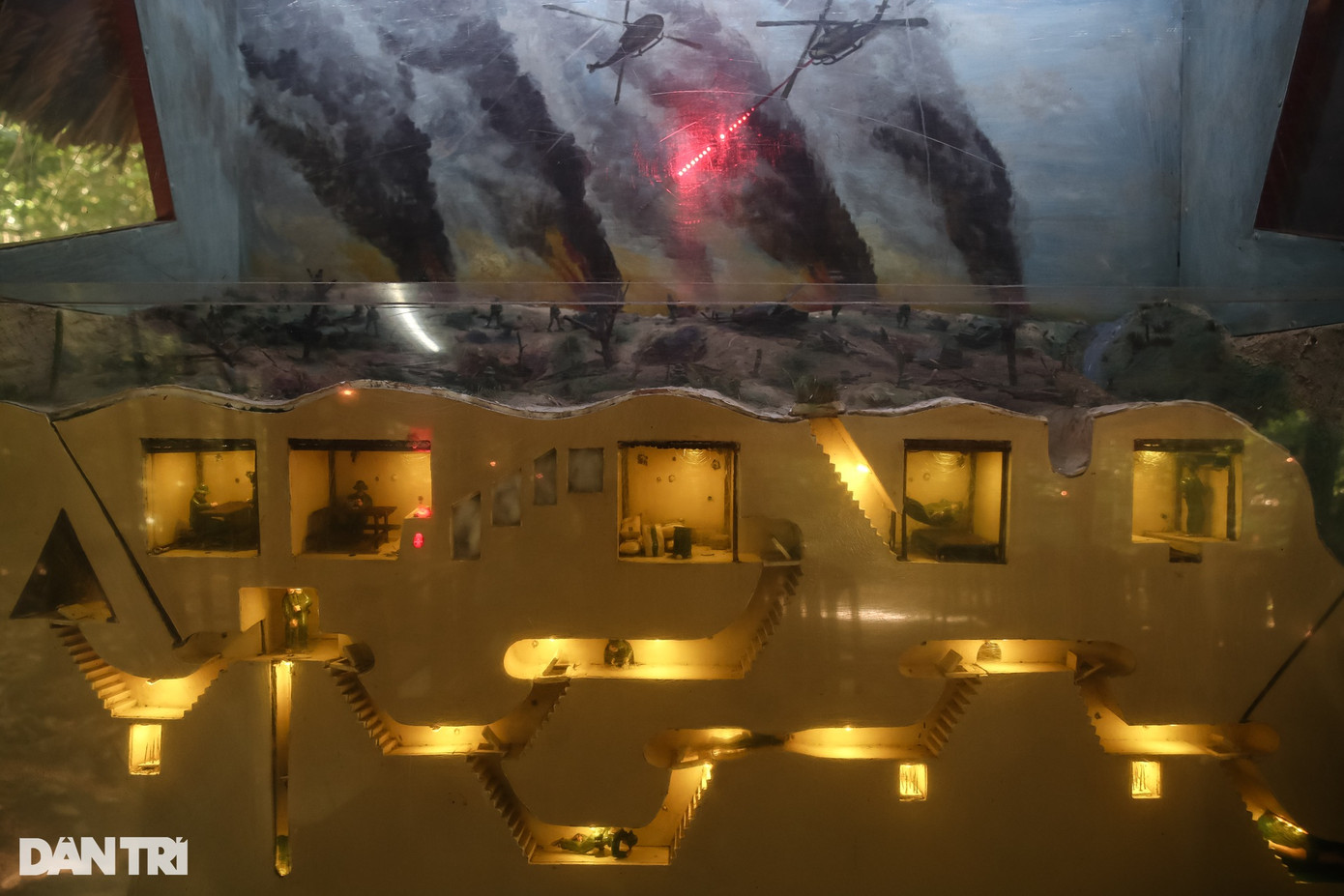 Mô hình địa đạo Củ Chi được trưng bày tại các khu vực chiếu phim tự liệu để người dân và du khách dễ hình dung.