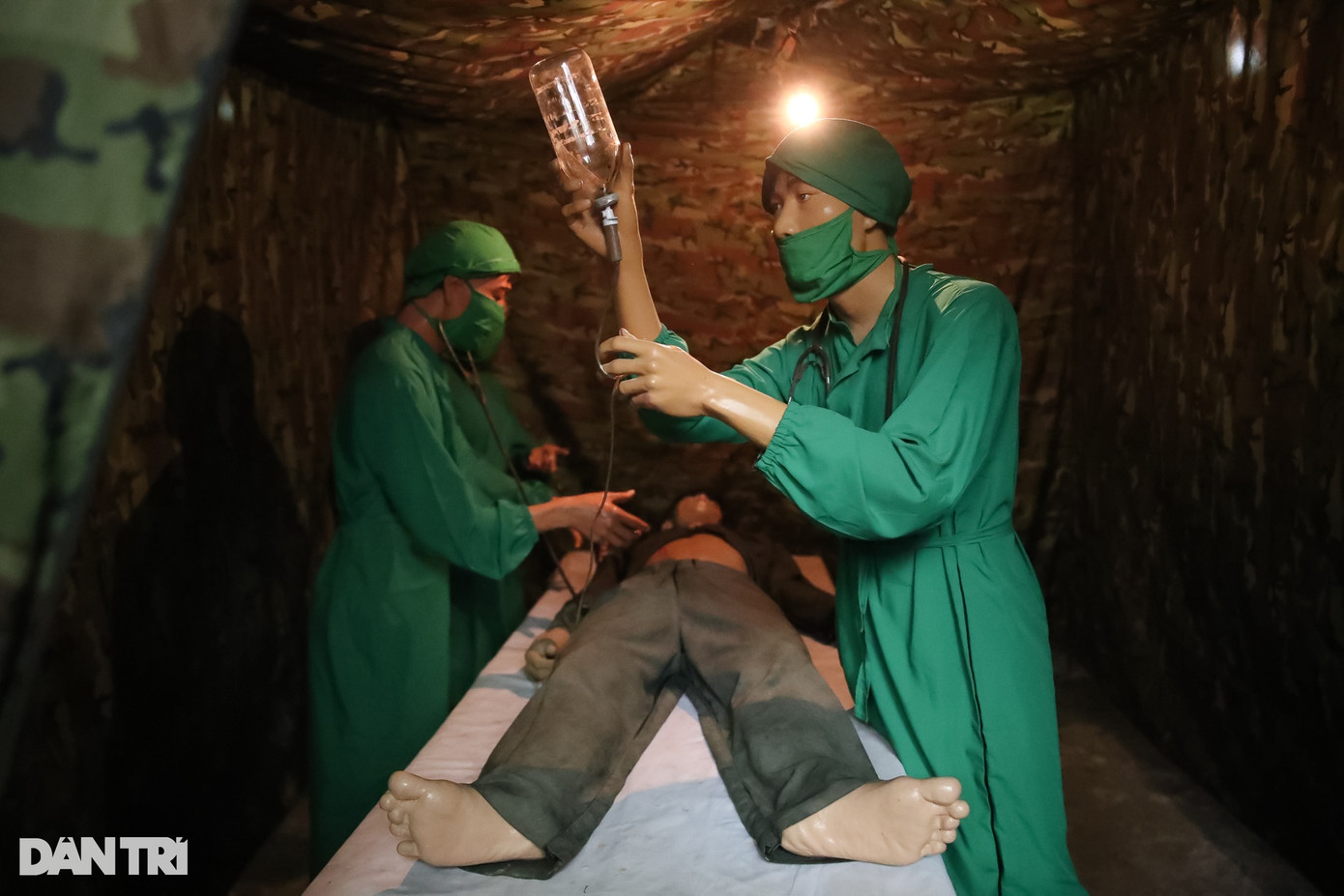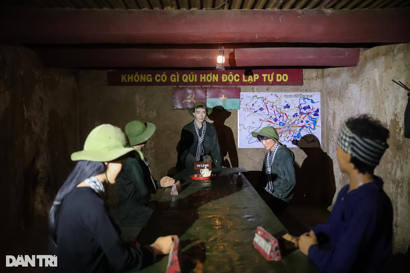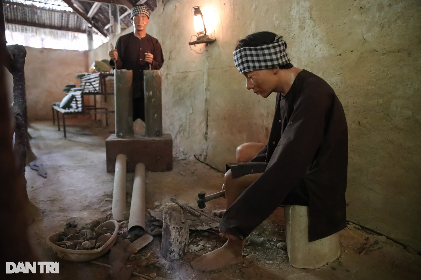 Khu hầm xưởng công binh với mô hình các chiến sĩ đang chế tạo vũ khí, đồ dùng sinh hoạt... từ những mảnh bom, đạn... thu giữ được từ quân địch.