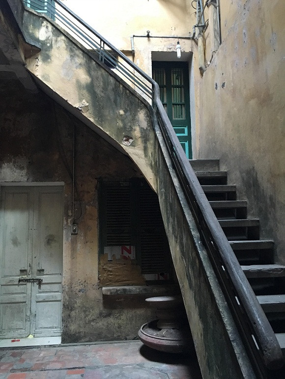 Cầu thang dẫn lên các tầng đã nhuốm màu rêu phong theo năm tháng. Ảnh: Thanh Hải
