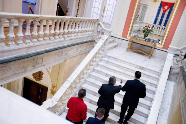 Trần nhà lắp kính, nhìn từ sảnh chính của Đai sứ quán Cuba tại Hoa Kỳ. Ảnh: Andrew Harnik-Pool/Reuters/Time.