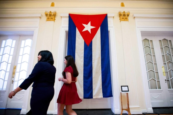 Quốc kỳ Cuba cũng sẽ được treo tại cổng vào Bộ Ngoại giao Hoa Kỳ cùng với các quốc gia khác có quan hệ ngoại giao với cường quốc này. Ảnh: Andrew Harnik-Pool/Reuters/Time.