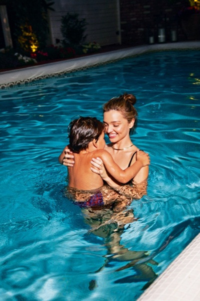 Bể bơi ngoài trời rộng rãi là nơi hai mẹ con Miranda Kerr thỏa sức chơi đùa