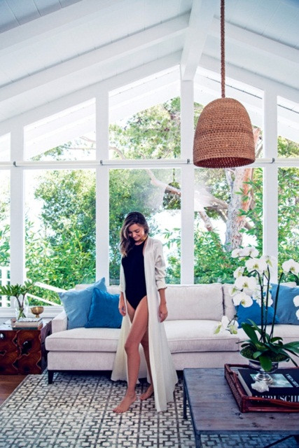 Ngôi nhà được bao quanh bởi rất nhiều cây xanh và ánh sáng với nhiều không gian mở bên trong, gợi nhớ tới thời thơ ấu của siêu mẫu ở quê nhà.