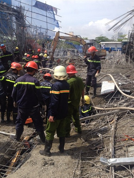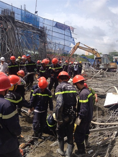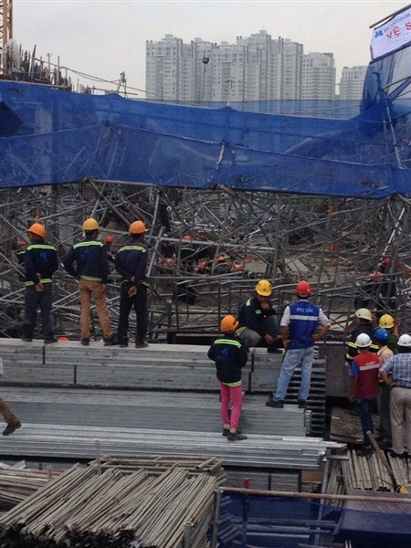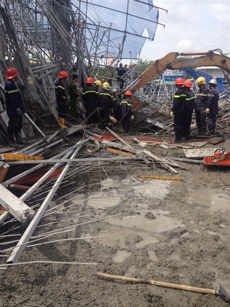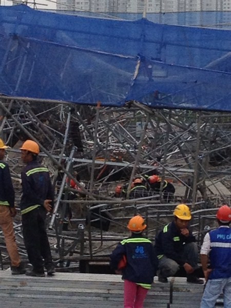 TPO - Vụ sập giàn giáo kinh hoàng xảy ra tại công trình tòa nhà cao tầng trên đường Nguyễn Văn Linh, phường Tân Phong, quận 7, TP.HCM vào sáng nay (10/7) làm 3 người tử nạn, 4 người bị thương.