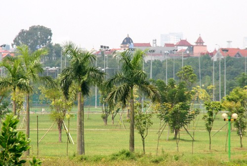 Khu sinh thái ở dưới chân cầu Thanh Trì, bao gồm bể bơi, sân bóng đá và tenis.