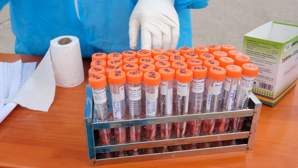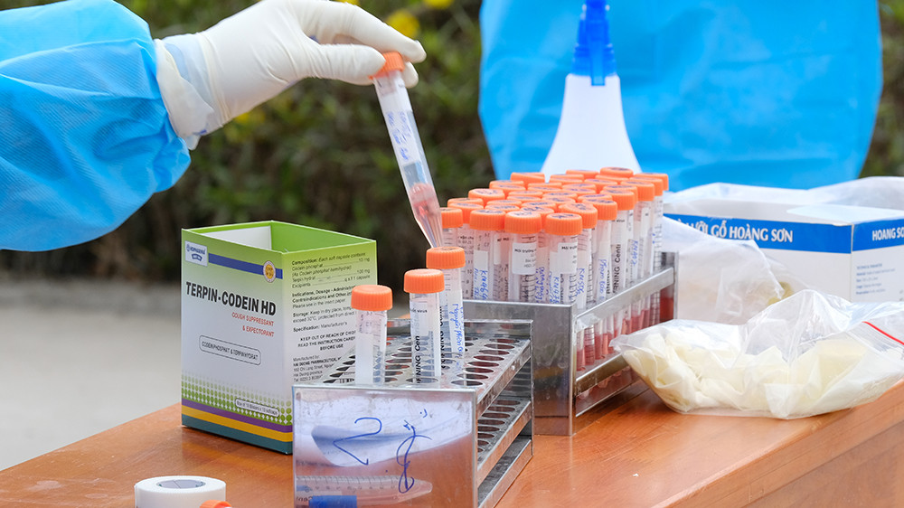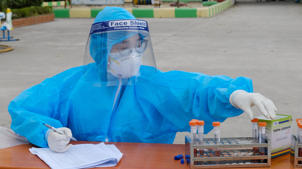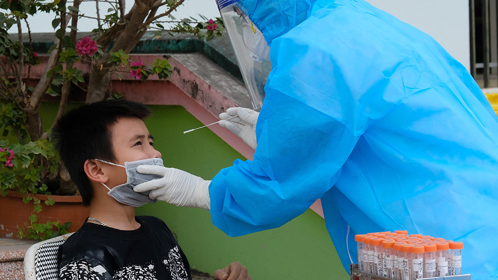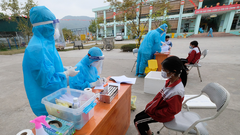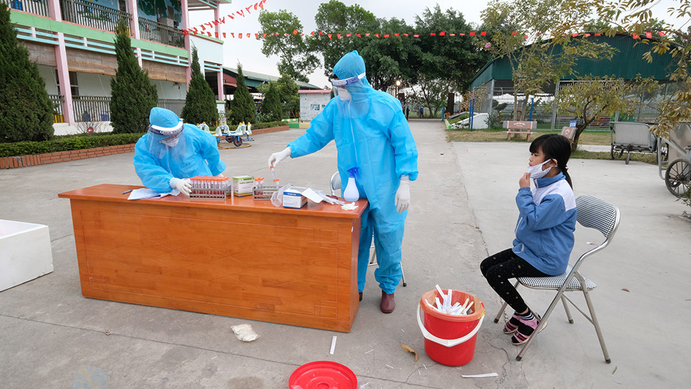 Các học sinh, người cách ly được lấy mẫu xét nghiệm COVID trong sáng 31/1.