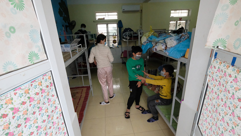 Giáo viên chủ nhiệm và một số phụ huynh được tạo điều kiện đi cách ly cùng để chăm sóc các em.