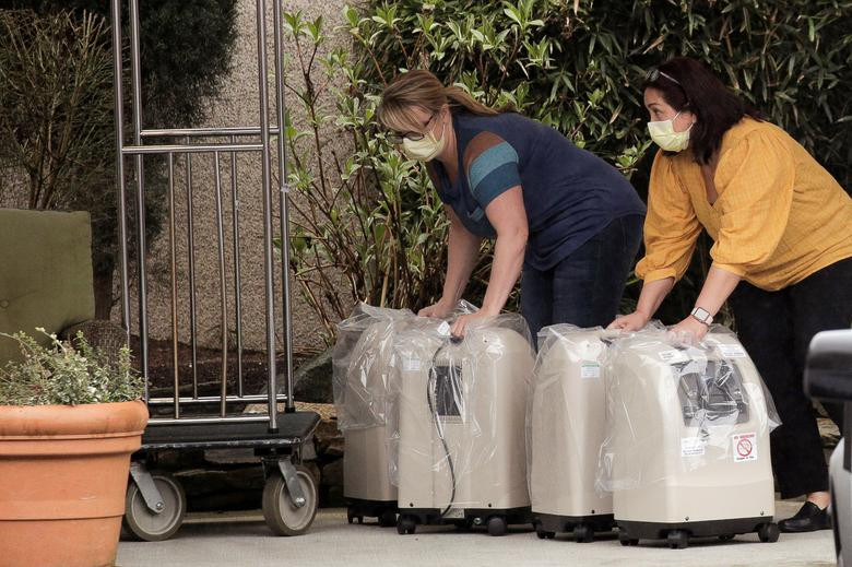 Nhân viên y tế tiếp nhận thiết bị trợ thở tại Kirland ngày 2/3.