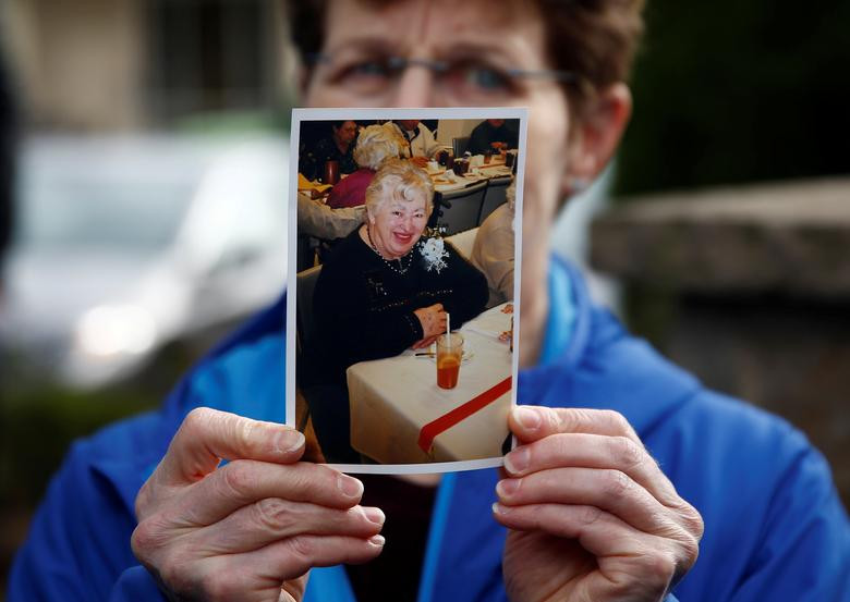 Pat Herrick giơ bức ảnh của mẹ - bà Elaine - sau khi bà qua đời sáng sớm 5/3 tại trung tâm dưỡng lão Kirkland.