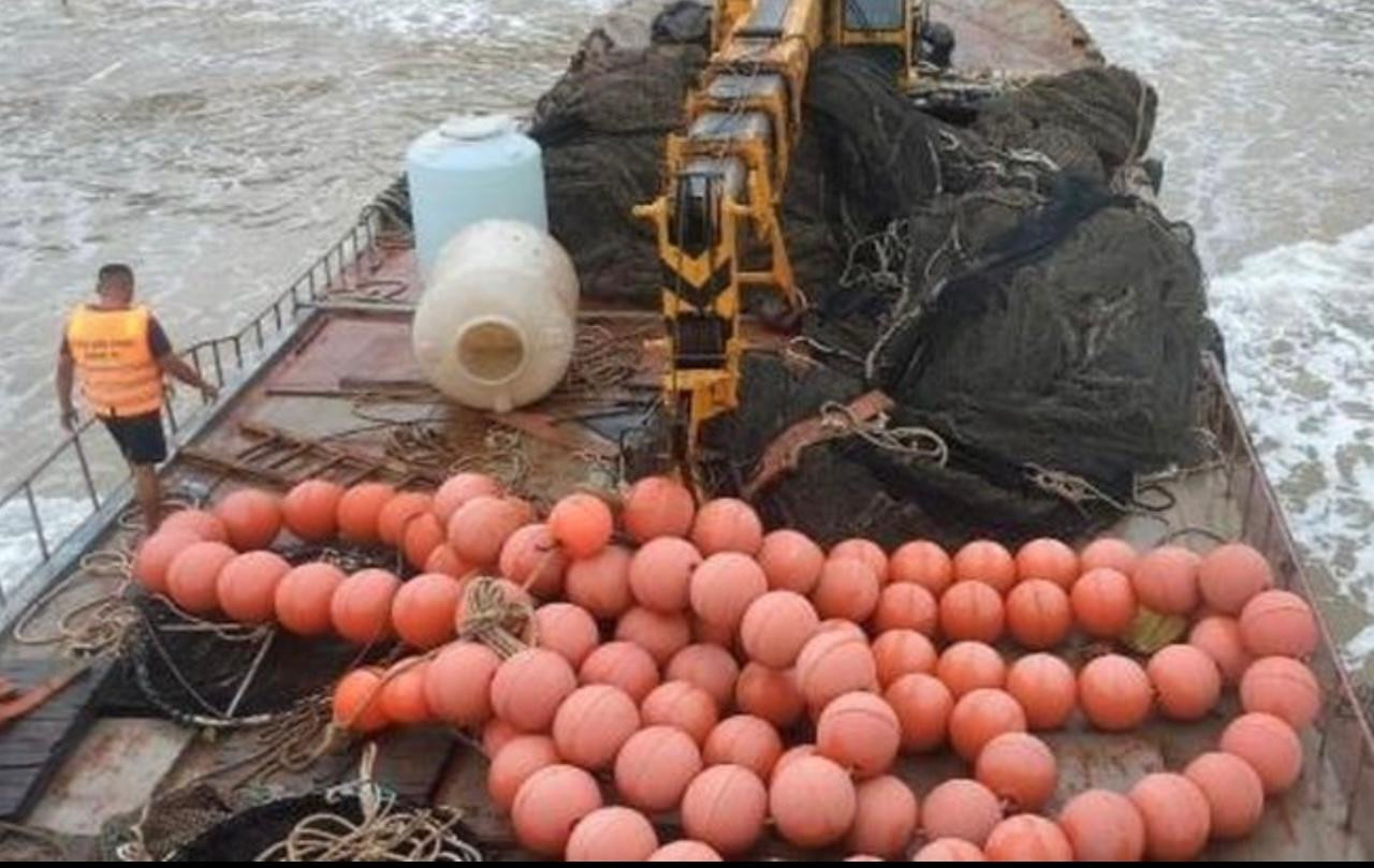 Phía trên tàu lực lượng chức năng phát hiện một số ngư lưới cụ bị hư hỏng và một cần cẩu dài 5m và có 3 trục.Trên nóc tàu có cờ đỏ bị rách không còn nguyên hình dạng, nghi cờ Trung Quốc.Trên tàu có đầy đủ các máy như tàu bình thường nhưng bị hư hỏng một số bộ phận.