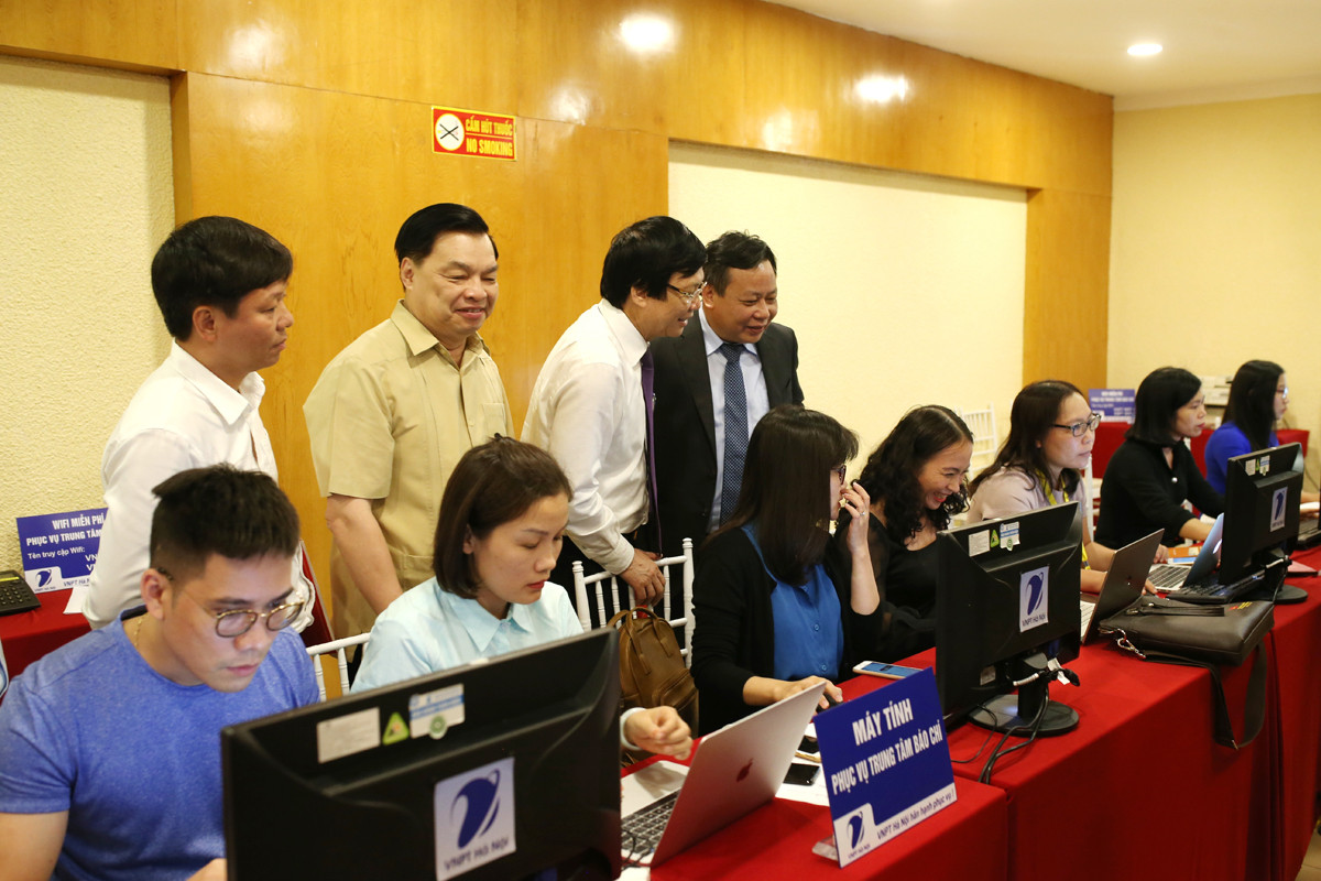 Trung tâm báo chí có phòng làm việc sức chứa gần 200 người với trang thiết bị hiện đại, màn hình lớn kết nối trực tiếp với hội trường nơi diễn ra Đại hội; máy tính, đường truyền internet và sóng wifi tốc độ cao.