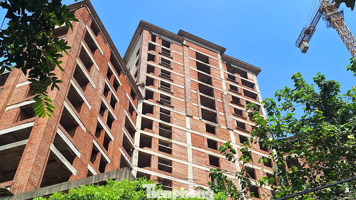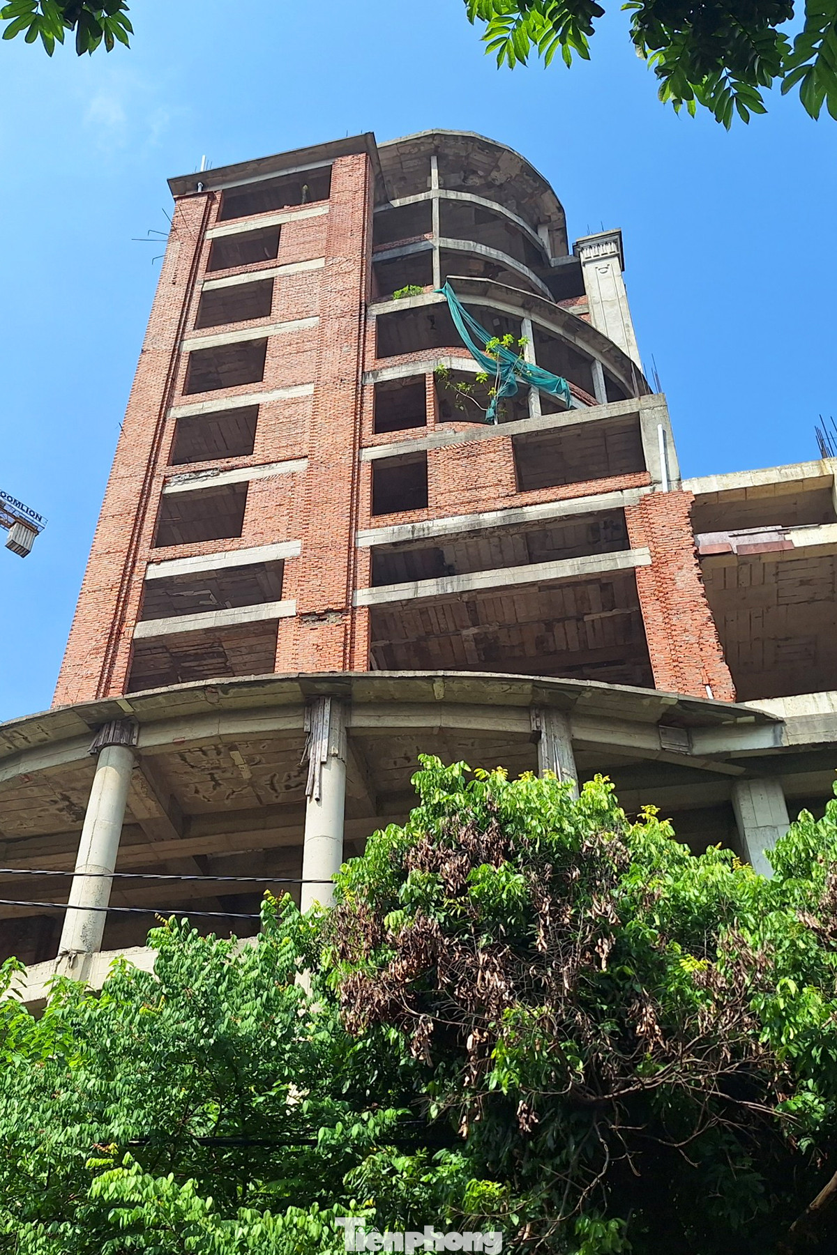 | Công trình treo từ lâu nên tình trạng hoang hóa đang diễn ra nhanh chóng, cỏ dại leo kín giàn giáo. |