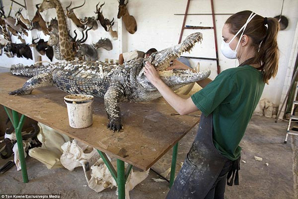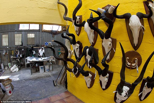 Xưởng nhồi xác động vật này mỗi năm lại nhận hàng trăm đơn hàng của các thợ săn nước ngoài như Mỹ, Đức đến Namibia săn bắn và để lại các chiến lợi phẩm. Xưởng sản xuất với 45 công nhân này luôn trong tình trạng không ngơi tay.
