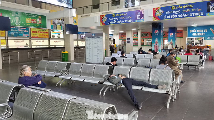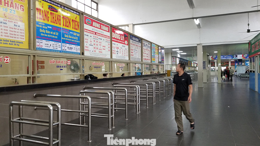 Như tại bến xe Giáp Bát, khu vực bán vé và nhà chờ chỉ lác đác vài hành khách, các quầy vé nhân viên hầu như chỉ ngồi… chơi vì không có khách hỏi mua vé. Các nhà xe đều cử nhân viên ra tận cổng bến chào mời khách. Đoạn đường Giải Phóng phía trước bến xe này cũng thông thoáng, chỉ có một số xe chạy tuyến Ninh Bình, Nam Định đi theo kiểu “rùa bò” để cố bắt thêm khách.