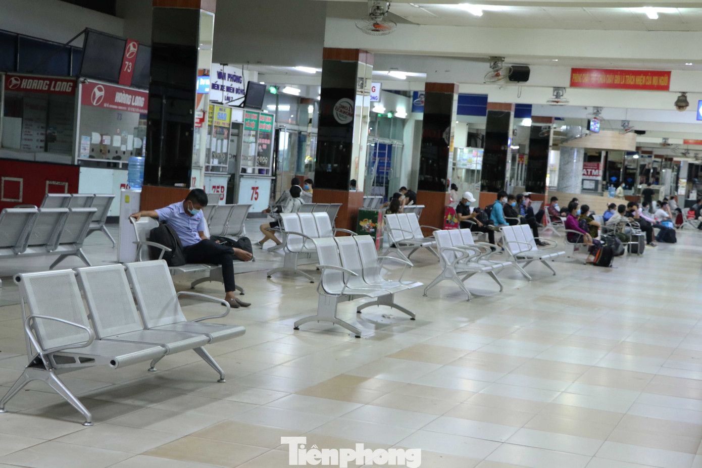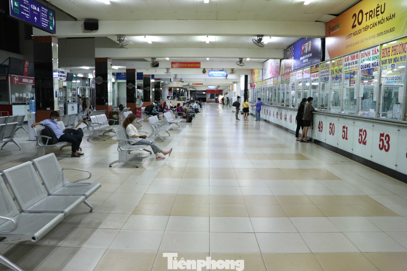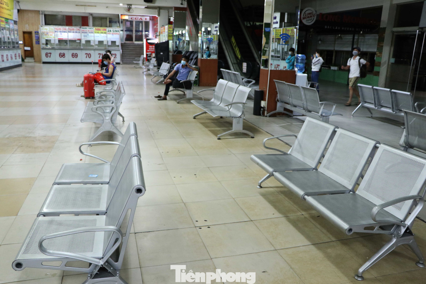 Các dãy ghế ở khu vực sảnh chờ lên xe thường ngày đông nghẹt thì nay đã bỏ trống vì không có người ngồi.