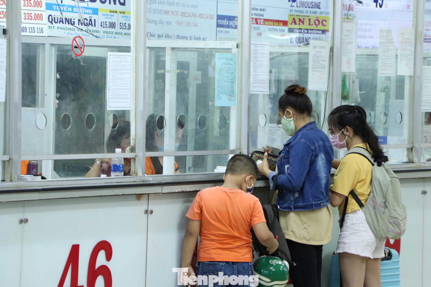 Bà Ngô Thị Viền (quê Bình Thuận) cho biết, biết ngày 1/4 sẽ ngưng xe khách nên vội ra bến mua vé về quê. Tuy nhiên, do không còn vé đi Phan Thiết nên bà phải mua vé xe đường dài, dù giá cao hơn nhưng bà vẫn vui vì có xe về quê.