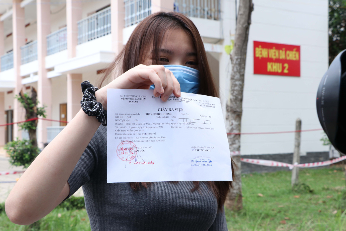 Chị T.T.H (du học sinh trở về từ Anh) được chuyển đến bệnh viện Dã chiến Củ Chi điều trị từ ngày 16/3, sau khi nhận được quyết định xuất viện, chị H. cho biết rất vui và xúc động với sự chăm sóc tận tình của các bác sĩ.